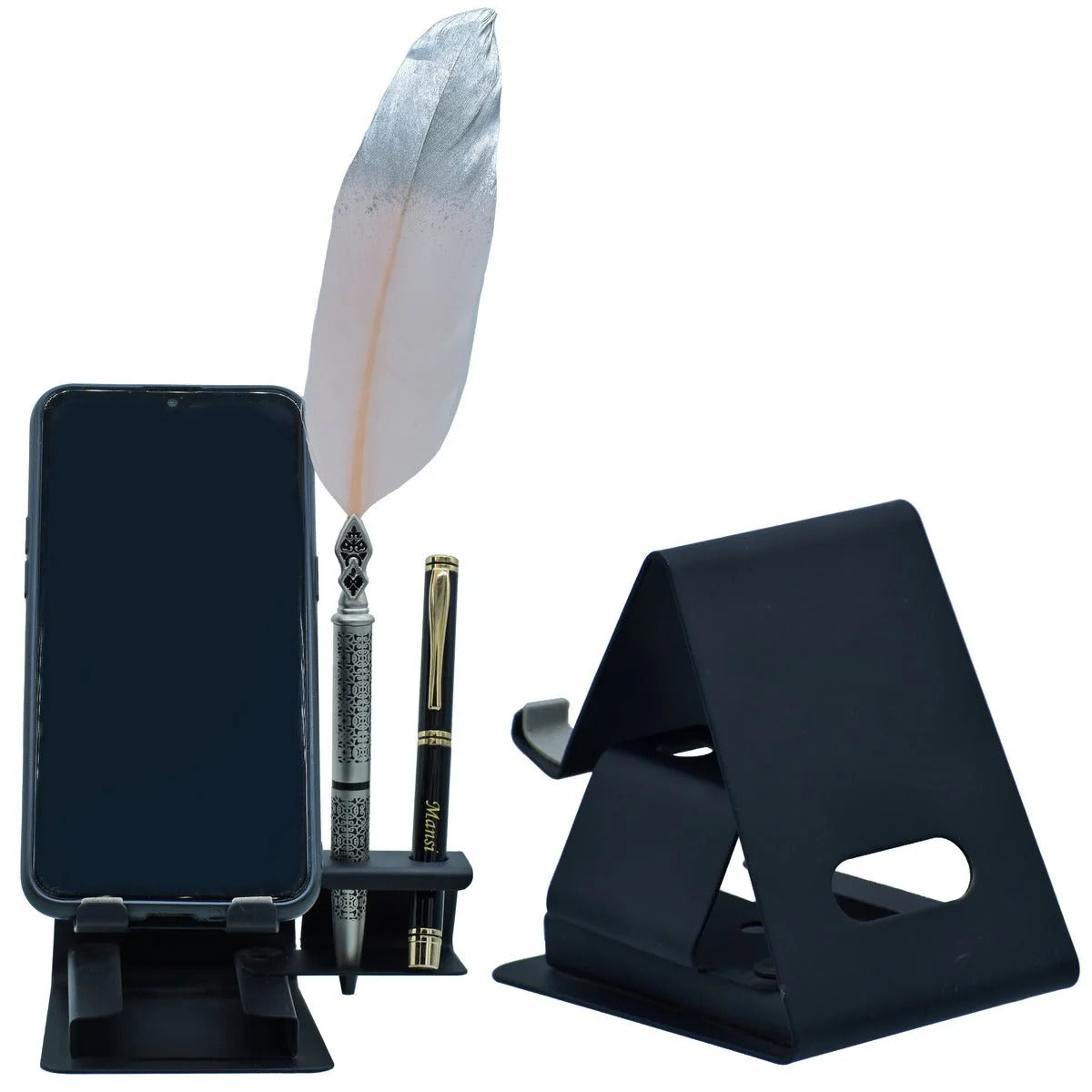 We specialize in bulk corporate gifting orders for personalized metal mobile stands and pen holders across India. Volume pricing available for 50+ units, with guaranteed uniform engraving quality and timely delivery to any location in India.